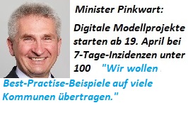 Die Vielzahl der qualitativ hochwertigen Projektskizzen zeigt: Die Kommunen haben ihr digitales Pandemiemanagement erheblich weiterentwickelt und so die Voraussetzungen geschaffen, um den Bürgerinnen und Bürgern mehr kulturelle, soziale und wirtschaftliche Aktivitäten zu ermöglichen. Deshalb haben wir eine größere Zahl von lokalen Einzelprojekten ausgewählt, die die Städte und Kreise an den Start bringen können, wenn das Pandemiegeschehen es erlaubt. Wir haben klare Kriterien für einen Abbruch festgelegt und wollen Best-Practice-Beispiele auf möglichst viele andere Kommunen übertragen nach dem Prinzip: Einer für Alle.“
