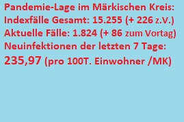 Neuinfektionen der letzten 7 Tage: 235,97 (pro 100.000 Einwohner/MK)