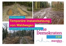 Die Mendener FDP-Fraktion beantragt die schnellstmögliche temporäre Instandsetzung unserer Waldwege, damit Bürger*Innen auch weiterhin den Freizeitwert des Waldes in dieser besonderen Lage nutzen können.